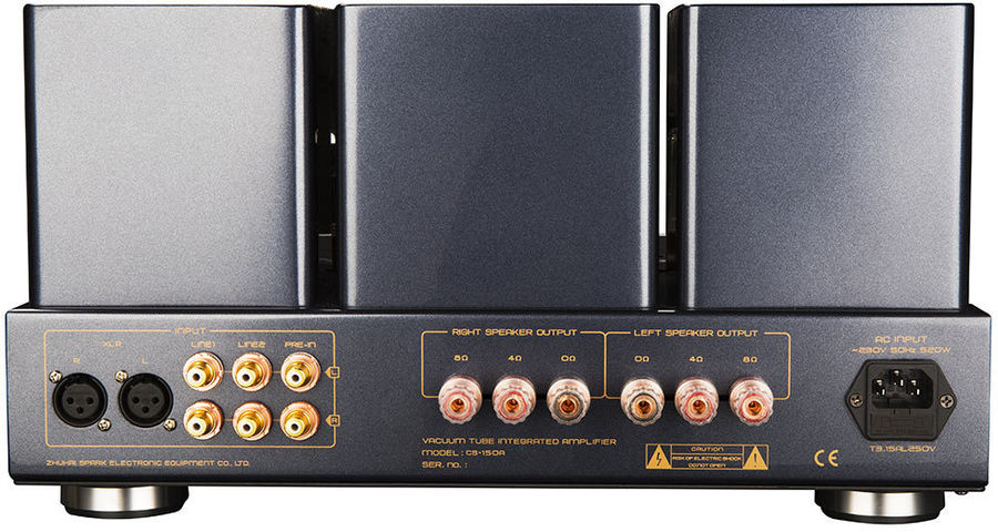 Côté connectique, l'ampli à tubes Cayin CS-150A met à disposition deux entrées asymétriques RCA ainsi qu'une entrée symétrique XLR. Il est ainsi possible d'y relier un lecteur CD/SACD, un lecteur réseau ou encore un DAC Audio, par exemple. Pratique, une entrée directe est également disponible pour associer l'ampli Cayin CS-150A à un pré-amplificateur externe.